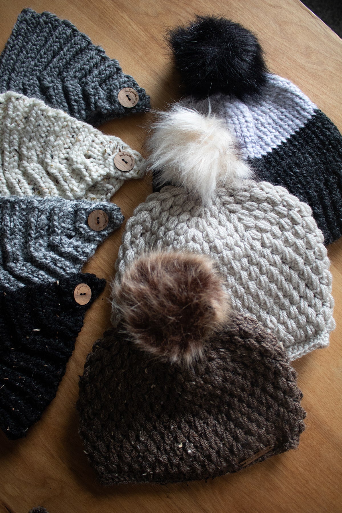 Handmade means crafted by hand. All my knit ware items are hand knit or crocheted using knitting needles or crochet hooks passed down to me from my grandmother and great-grandmother. The wooden tags are made and engraved by a fellow small business owner and hand sewn onto each finished product.
